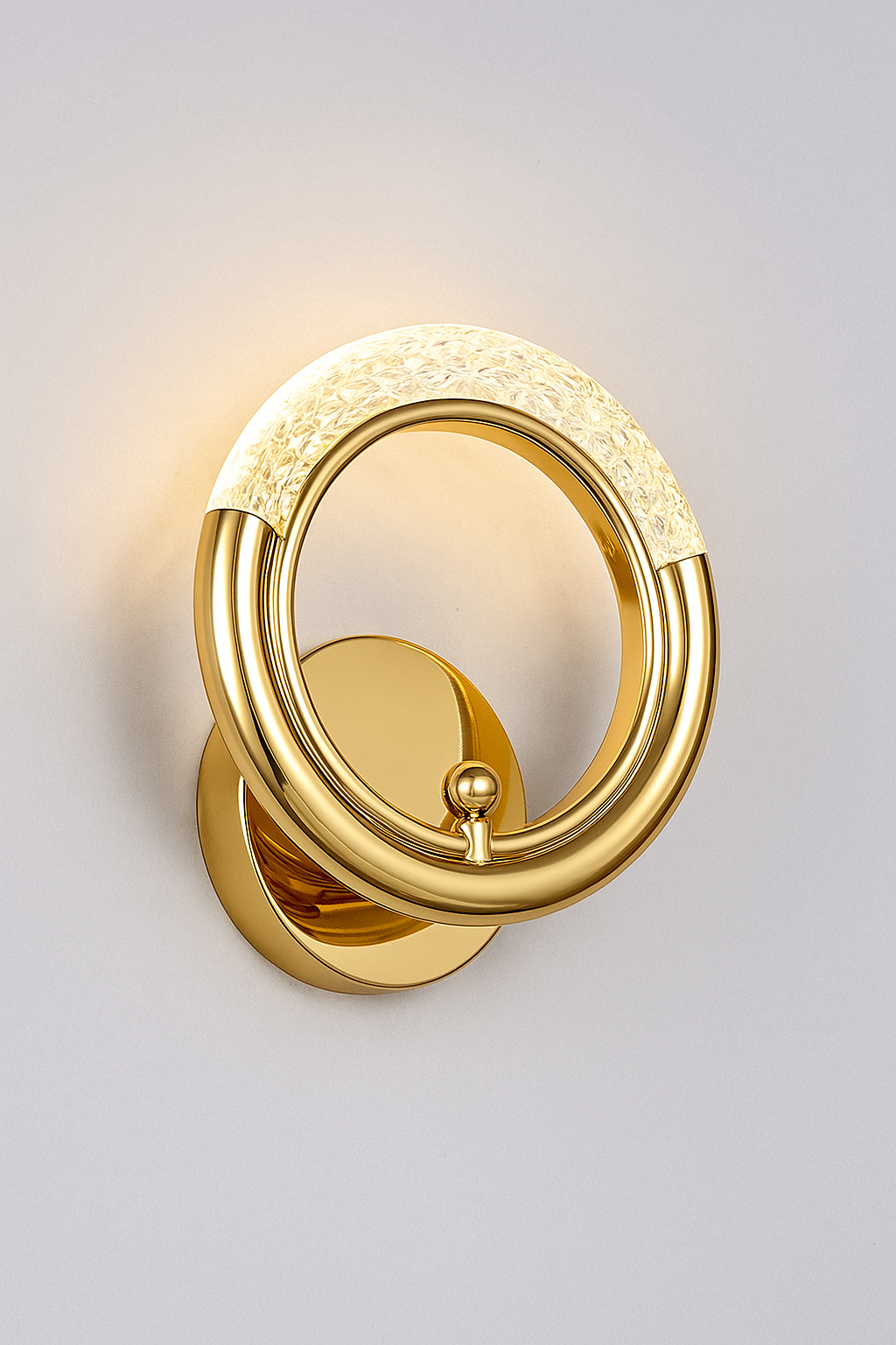 Add a touch of sophistication to your interiors with this stunning crystal ring LED wall light. Designed with a sleek rose gold finish and a half-crystal textured ring, it beautifully diffuses light to create a warm, ambient glow. Perfect for bedrooms, living rooms, hallways, and decorative accent walls, this fixture combines modern elegance with functional illumination. Its durable build and energy-efficient LED technology ensure long-lasting performance and timeless style.
