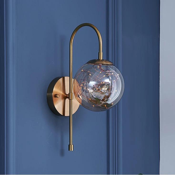 Fairy Glass Ball Wall Light Metal Modern Style Glass Lampshade Iron Chassis Led Wall Lamp with 8w Light Source for Home Decoration (Warm White), Pack of 1